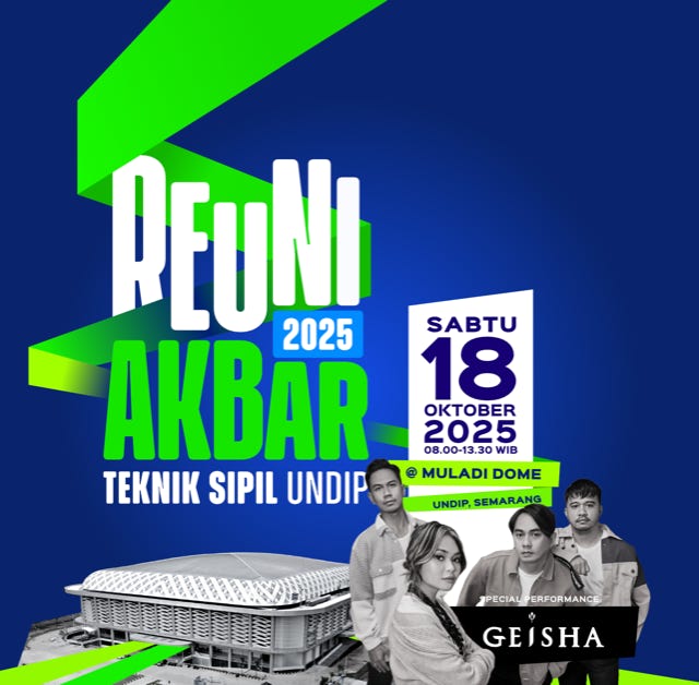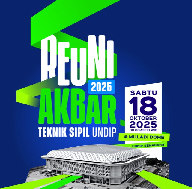 Reuni Akbar 2025 akan berlangsung di Muladi Dome, gedung multifungsi kebanggaan Universitas Diponegoro. Dengan kapasitas besar, fasilitas modern, dan lokasinya yang ikonik di kawasan Tembalang, Muladi Dome menjadi simbol kemajuan sekaligus ruang pertemuan alumni Teknik Sipil lintas generasi.